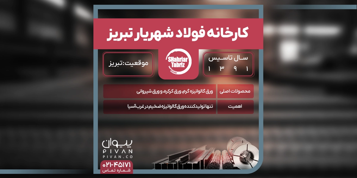 کارخانه صنایع فولاد شهریار تبریز یکی از شرکتهای پیشرو در صنعت فولاد ایران است که در سال ۱۳۹۱ با هدف تولید ورقهای گالوانیزه باکیفیت تاسیس شد. این کارخانه به عنوان زیرمجموعهای از گروه صنعتی پارس ساختار فعالیت میکند و با بهرهگیری از فناوریهای روز دنیا، نخستین تولید کننده ورق گالوانیزه ضخیم در شمالغرب کشور به شمار میرود.